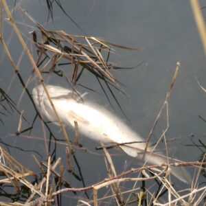 Suite à un appel téléphonique d’un pêcheur pour nous signaler que des poisons morts flottés sur le bord de l’étang.